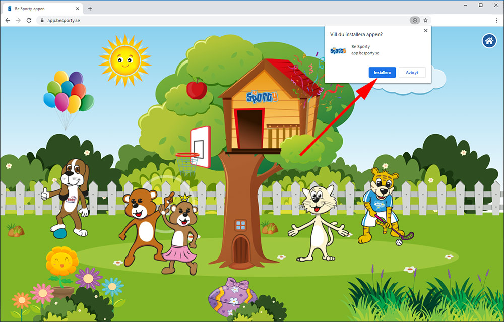 Appen finns inte tillgänglig för nerladdning i App Store eller på Google Play. Vi har valt att bygga Be Sporty-appen som så kallad PWA (Progressive Web App). Detta innebär att den är direkt tillgänglig för installation genom att surfa med valfri webbläsare till adressen app.besporty.se.